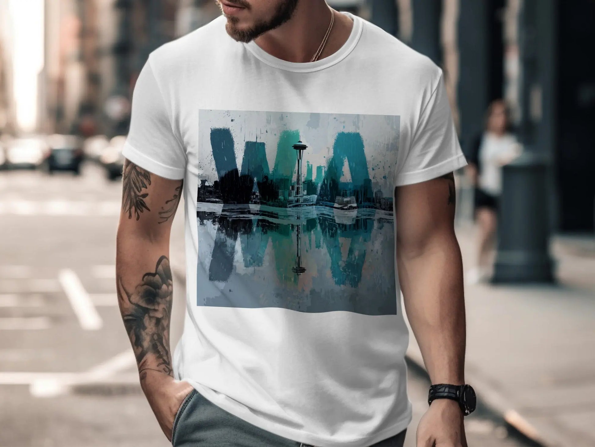 The Seattle Street Skies WA Apparel captures this identity through rain-drip graffiti strokes symbolizing Seattle weather and creativity, deep green tones reflecting evergreen forests, and skyline linework inspired by the Space Needle and downtown silhouette. It’s a design for people who love the Pacific Northwest vibe — calm but intense, rainy but alive, artistic and real.