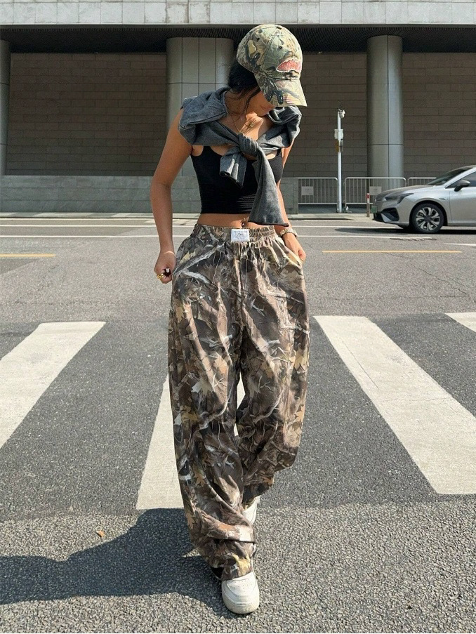 Slimming Casual Pants Hip Hop Retro Street Multi-pocket Camouflage Cargo Pants For Women Y2k Hip-hop Cargo Grunge Baggy Trousers