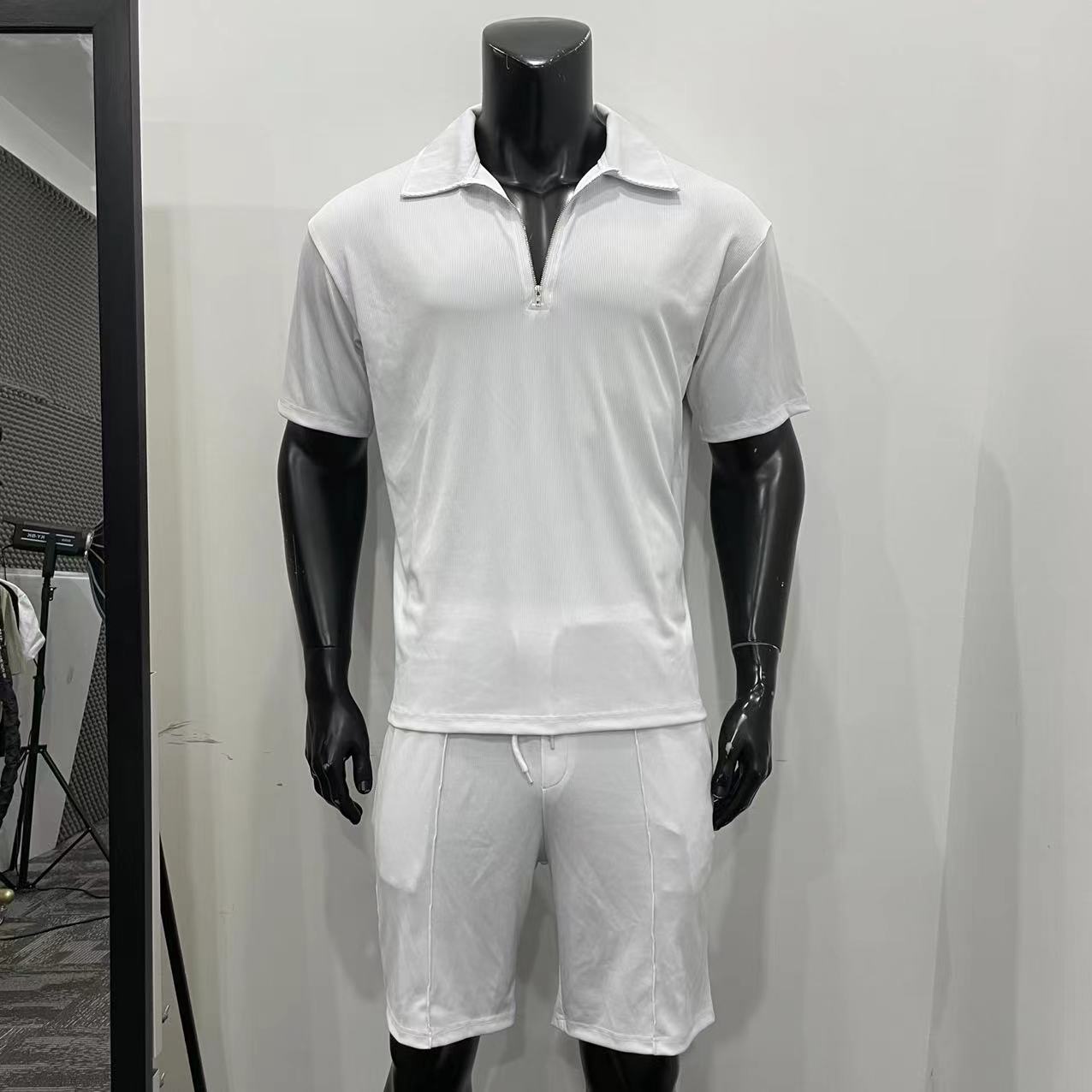Summer Fashion Mens Clothing Men’s Suits New Zipper Polo Casual Short Sleeve Drawstring Shorts Men’s Set